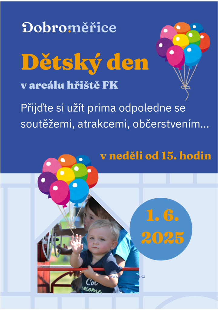 Přijďte si s dětmi užít odpoledne plné zábavy a her v neděli 1. 6. 2025 od 15:00 v areálu hřiště FK, kde na vás budou čekat souteže, atrakce, občerstvení a další.