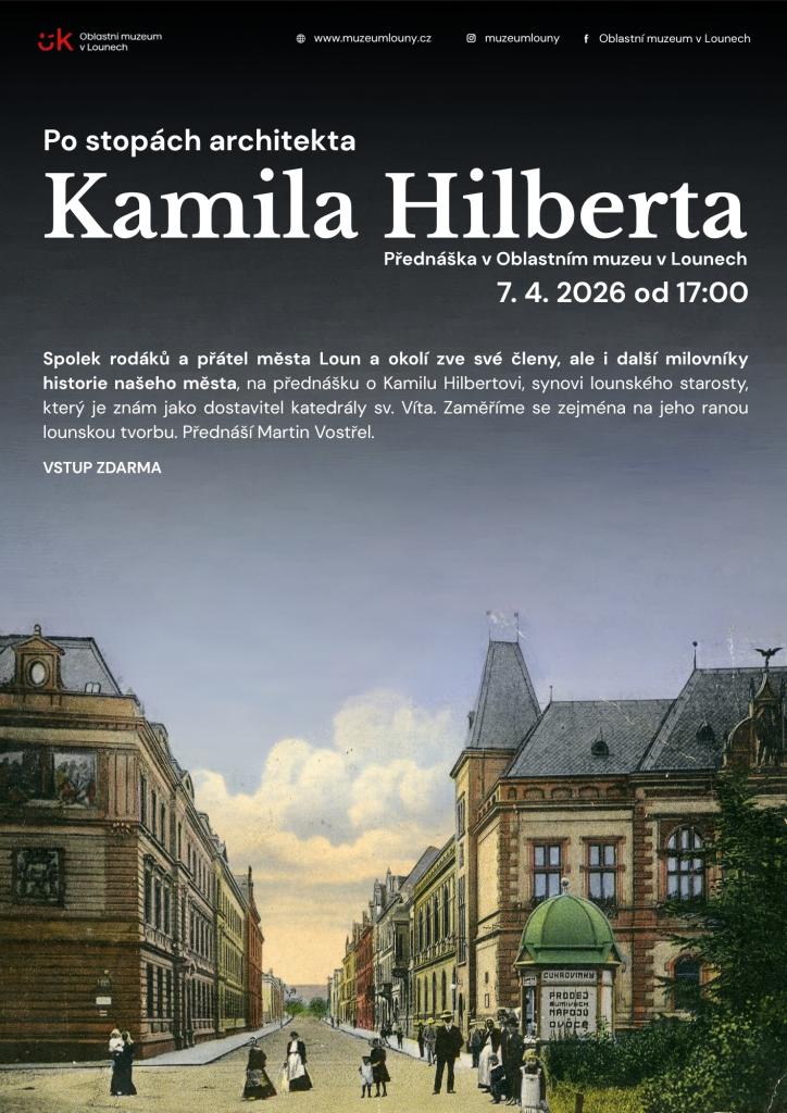 Oblastní muzeum v Lounech Vás zve na přednášku Po stopách architekta Kamila Hilberta, která proběhne v úterý 7. 4. 2026 od 17:00 a bude jí provázet přednášející Martin Vostřel.